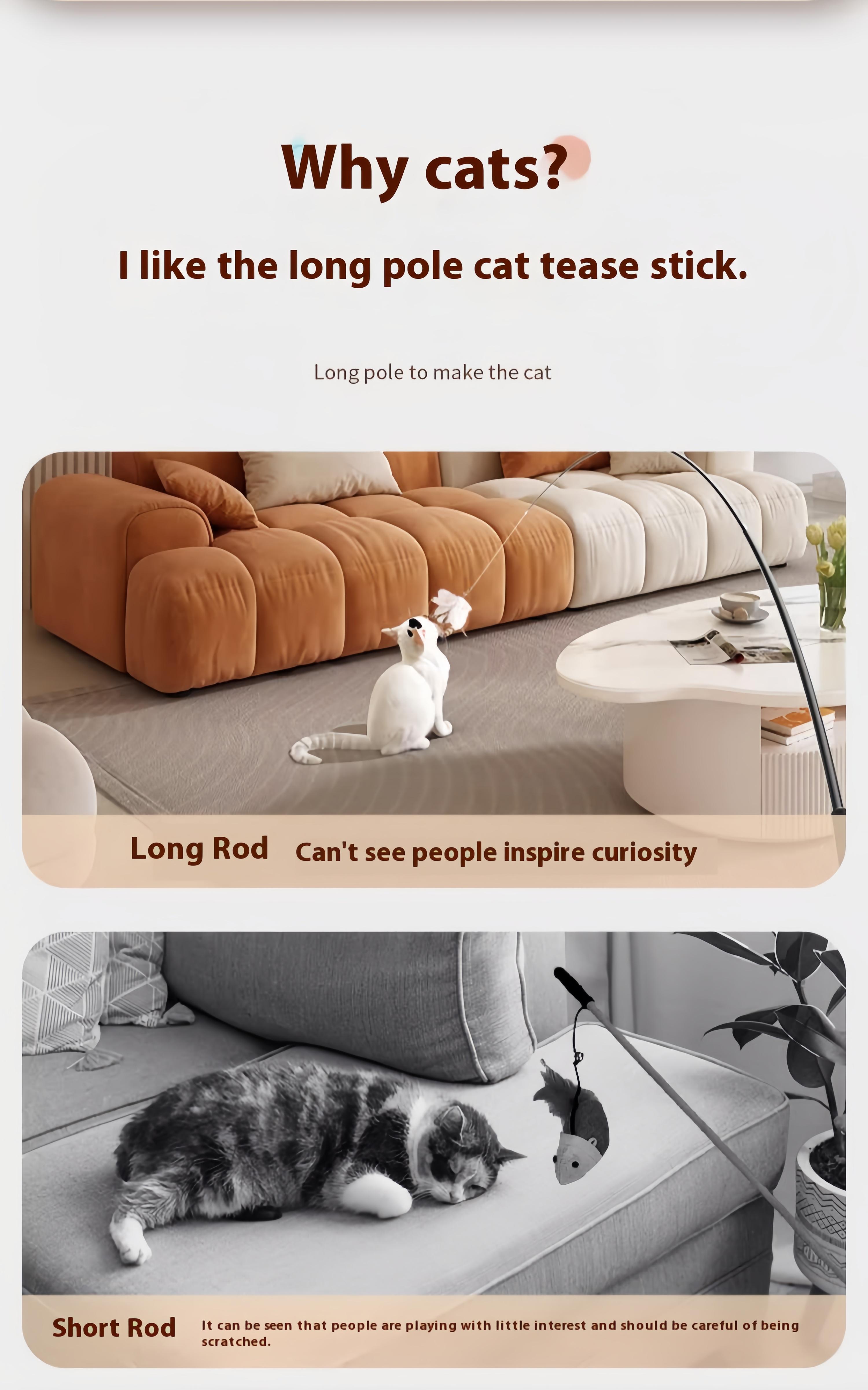 Extendable Pole: With an extendable pole that can be extended over 1.8 meters, this stick offers a versatile way to keep your cat entertained.